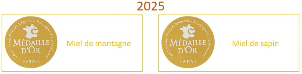 Nos miels sont souvent récompensés aux concours régional des miels de Bourgogne Franche Comté.